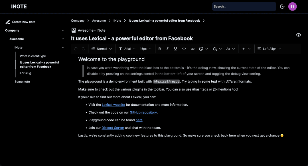It uses Lexical - a powerful editor from Facebook. You style your note in a creative ways