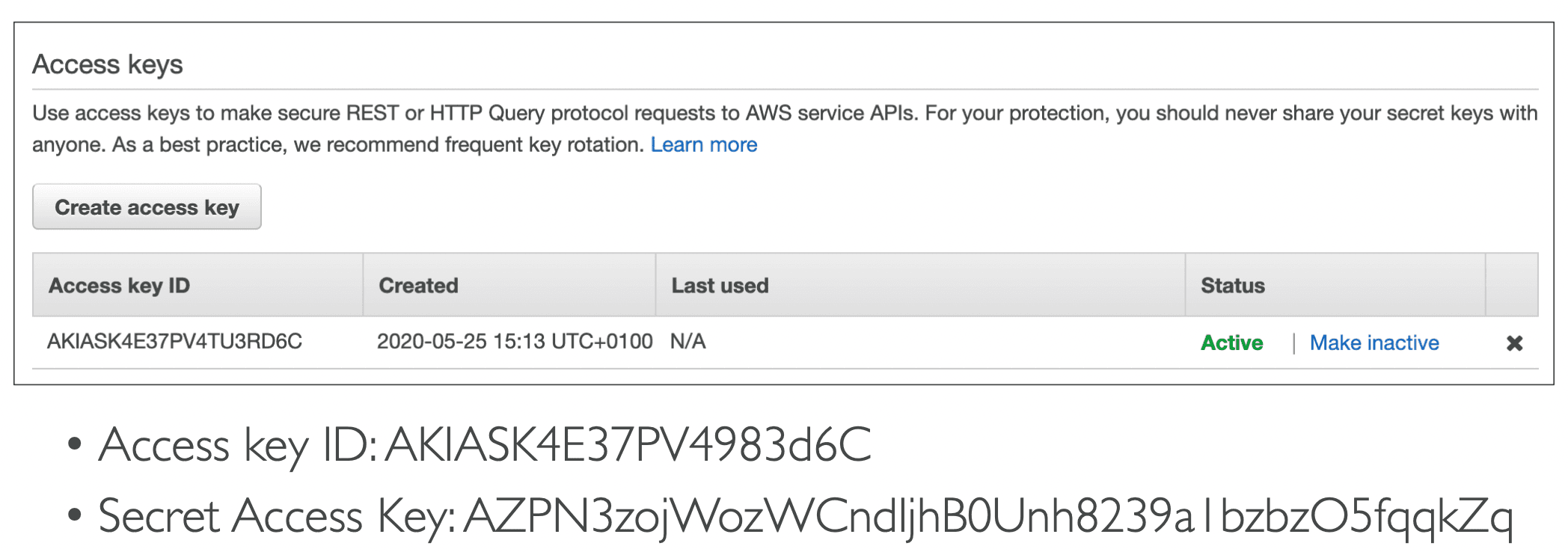 Access Keys are secret, just like a password