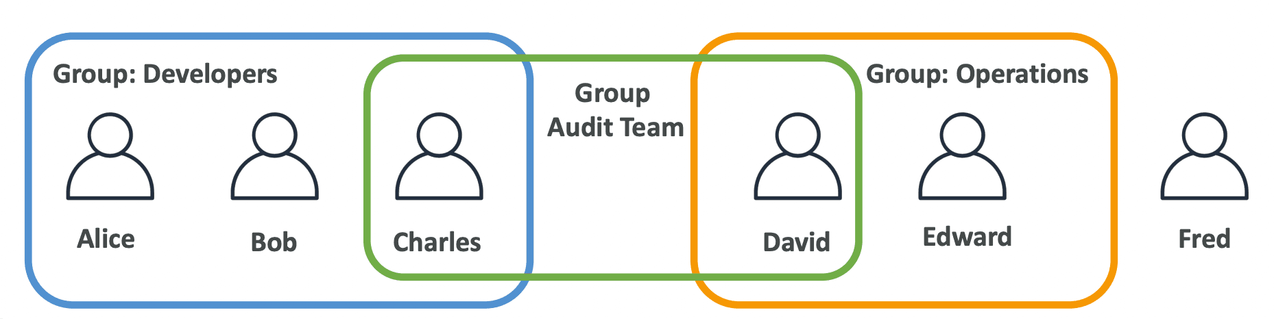 - Users don’t have to belong to a group, and user can belong to multiple groups
